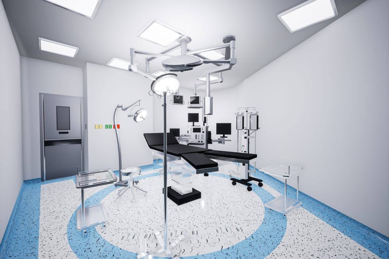 Soluciones duraderas para hospitales y escuelas, con pisos conductivos e impermeabilizantes que cumplen normas estrictas.
